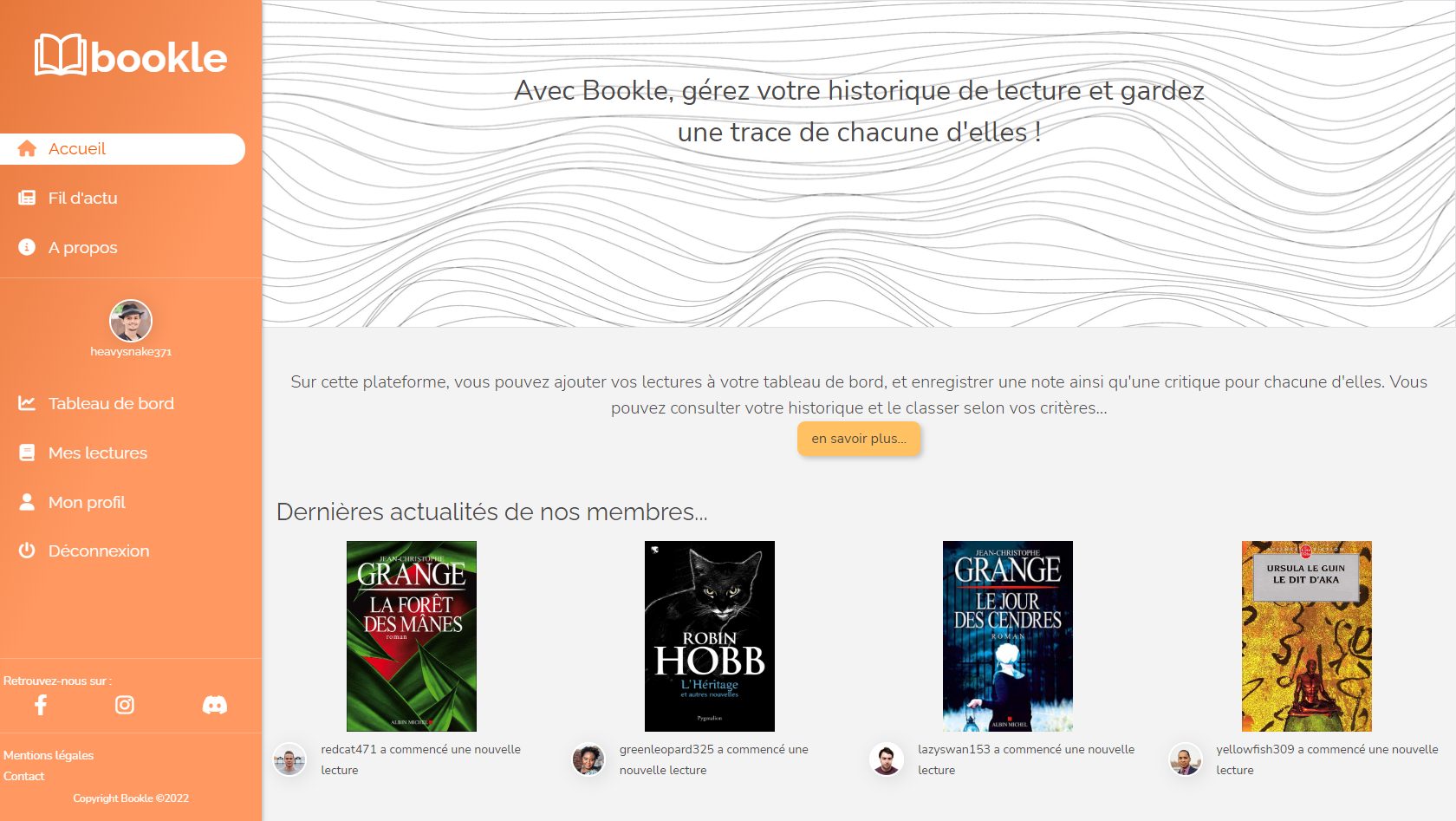 Il s’agit d’une plateforme permettant aux lecteurs de gérer le suivi de leurs lectures: ajout de livres à sa liste, insertion de critiques et de notations, consultation de ses statistiques de lecture… Avec une interface d’administration incluse.